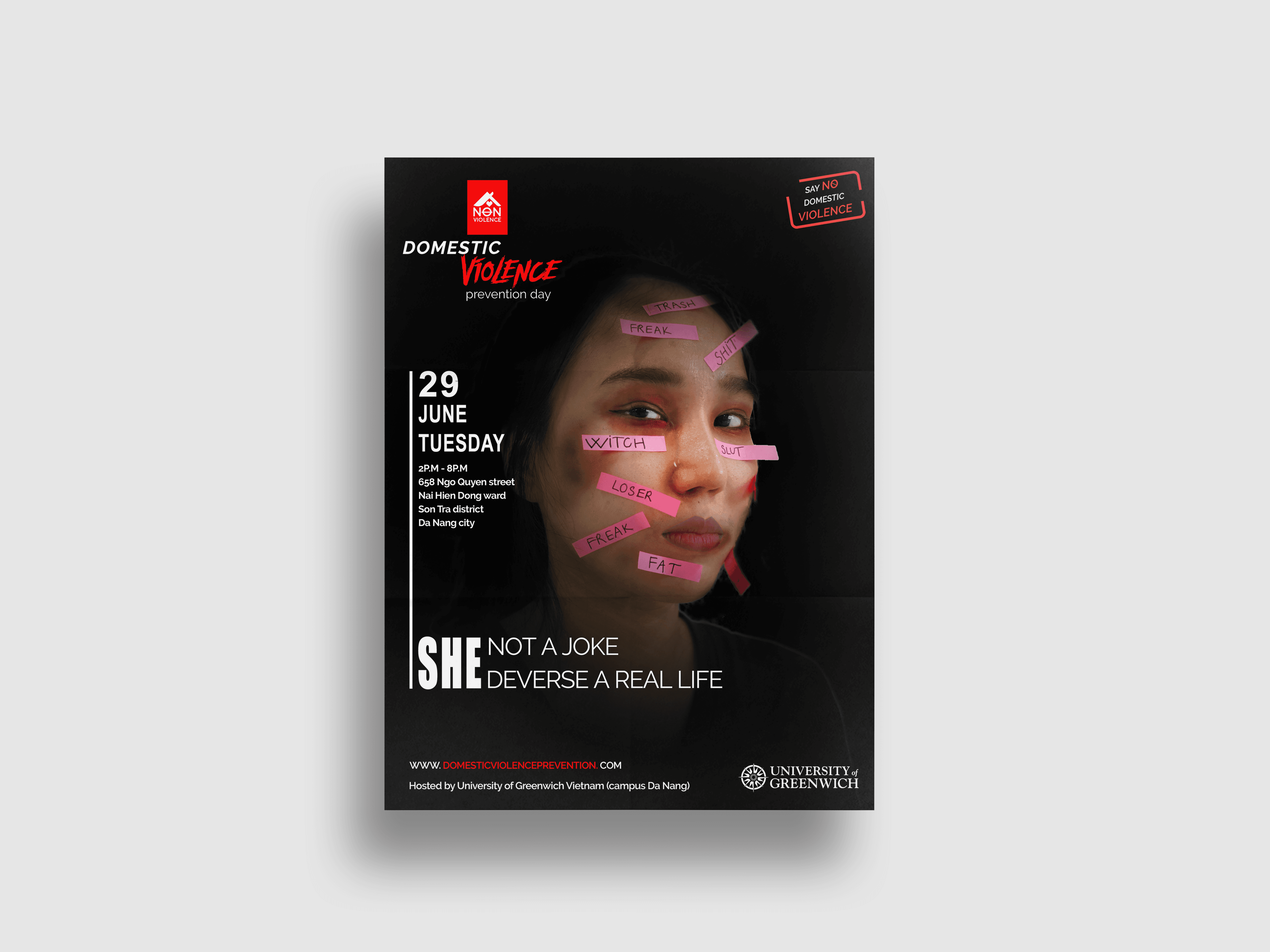 "Dovition" is a combination of 3 words: Domestic Violence prevention, which is a hypothetical project organized to convey and raise people's awareness about domestic violence, a painful and silent issue. The event occurred on June 29, inspired by Family Day (June 28). Anyone can be a victim of this problem, they can suffer from mental, physical, sexual or even personal property violence. With the slogan:" Love build home, not Violence", we hope to convey the meaning of this project. For this project, we will make logo to identify the event, poster and other publications to bring completeness to the event.